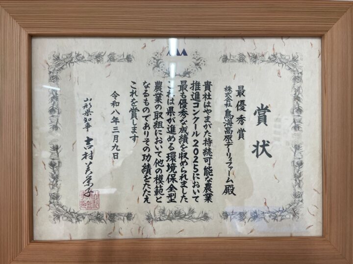 鳥海高原DF、「やまがた持続可能な農業推進コンクール2025」最優秀賞を受賞